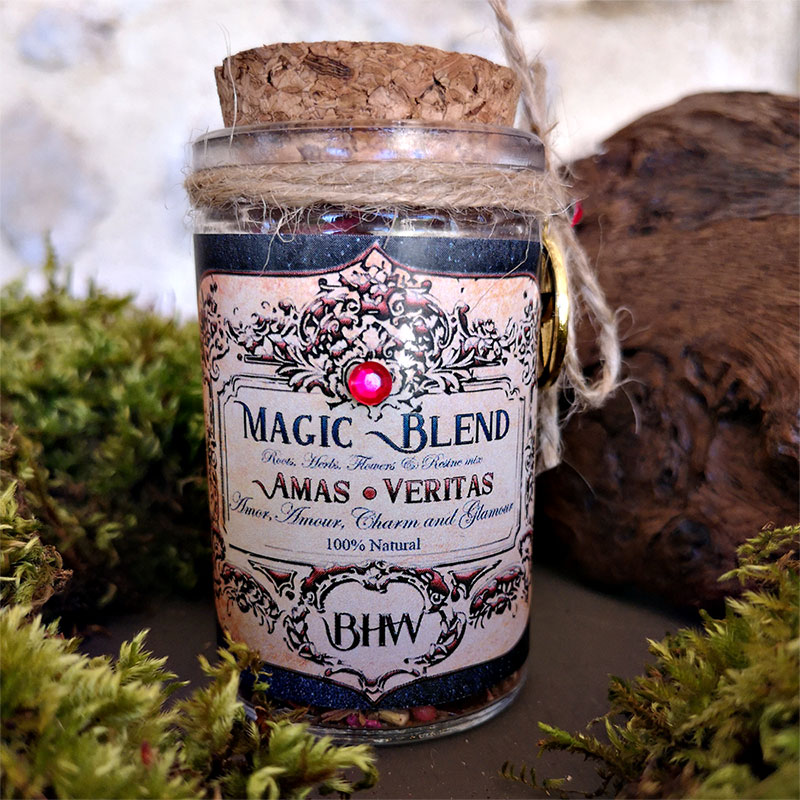 Nous avons repris les bases de cette formule pour créer un mélange unique, pouvant s’utiliser sous forme de fumée en encens, dans des talismans, des charmes, des bouteilles d’envoûtement mais également dans des huiles personnelles.