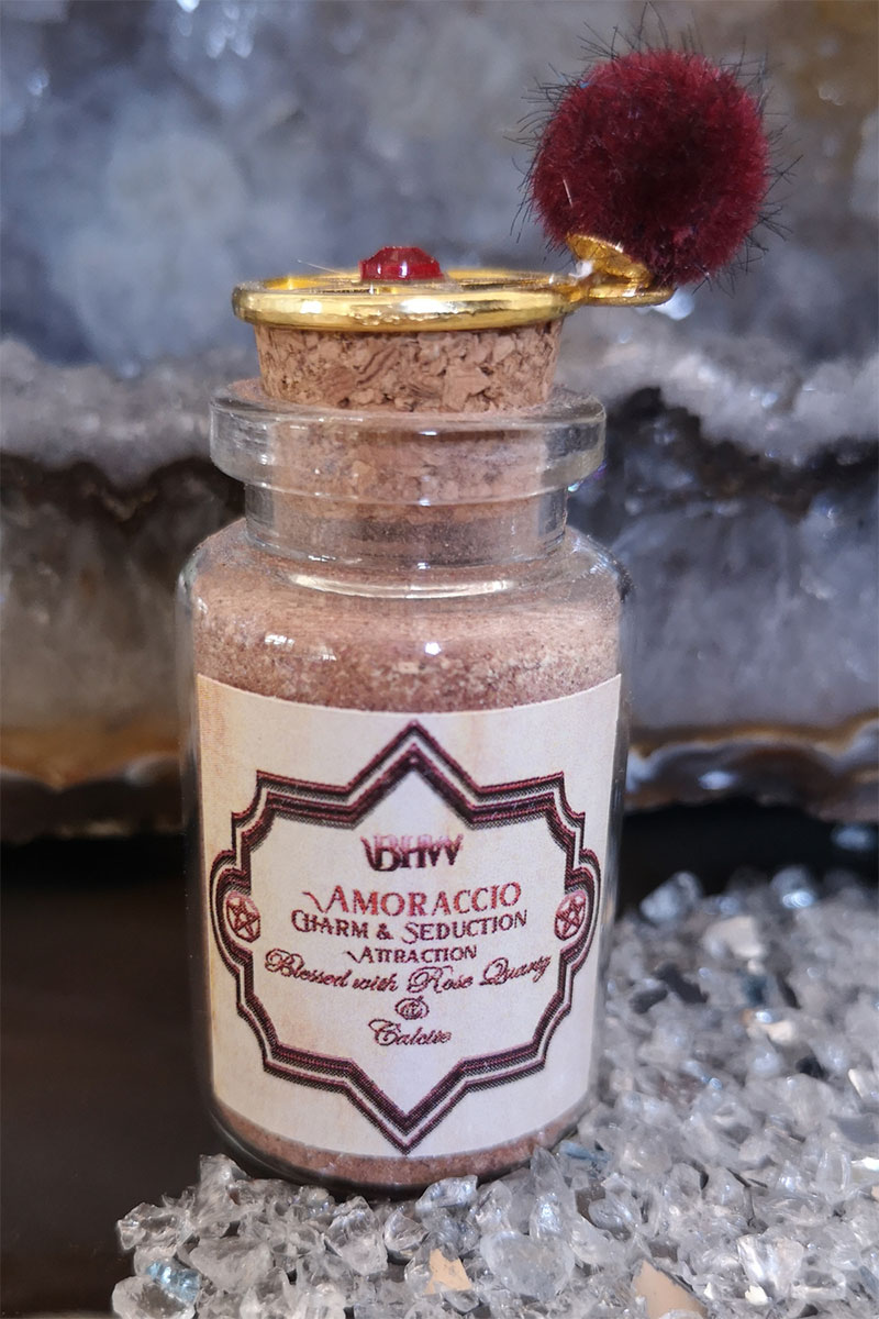 Dans un mélange doux, claire et séduisant de graines de cardamome, de fleurs d’hibiscus, de safran des Indes, rhodiola rosea, roses rouges, amandes et de cerises, notre poudre « Amoraccio » élève la barre des puissances attractives et érotiques. Les cerises, symbolisent bien plus que la nourriture car elles ont longtemps été associées à l’énergie féminine et utilisées dans les pratiques divinatoires, les offrandes et les sorts à travers le monde pour attirer les prétendants et discerner l’avenir. L’amande, quant à elle, apporte sagesse, fécondité et prospérité sur tous les aspects de la vie.