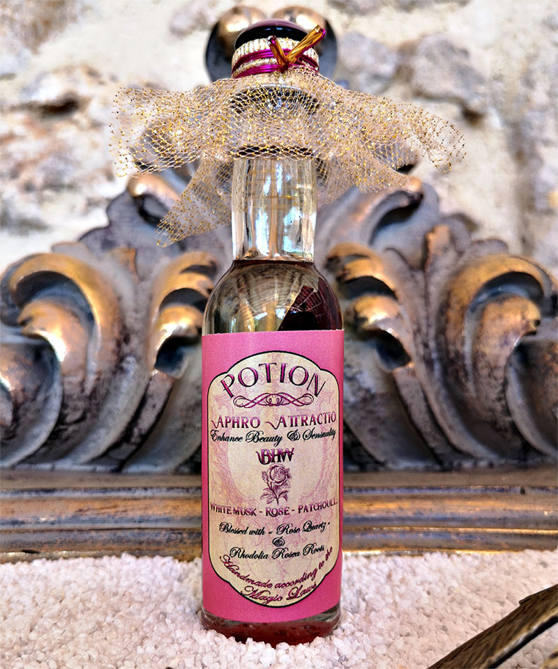 Bien sûr « Aphro-Attractio » ne créer pas vraiment un sentiment d’amour car il est impossible de fabriquer ou d’imiter l’amour. Cependant elle produit une forte attirance ciblant spécialement les personnes ayant les qualités pour vous compléter tel une âme sœur. De plus, ces composants en font une des potions les plus puissantes car elle peut être utilisée dans n’importe quel type de magie.