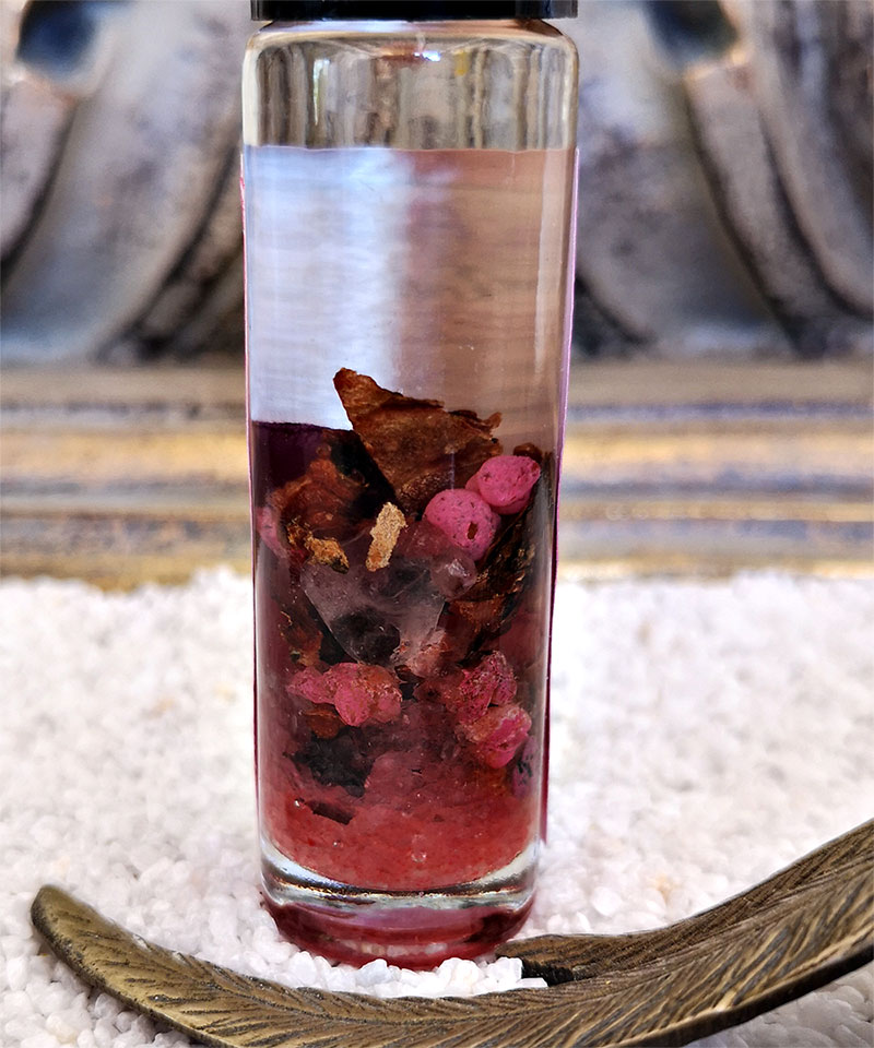 Ce puissant mélange de beauté et sensualité est dosé avec l’intention d’attirer l’amour dans votre vie le plus rapidement possible et d’améliorer l’attraction ! Il peut être utilisé pour attirer votre âme sœur, renforcer votre relation actuelle, aider à la réconciliation, augmenter les chances d’une demande en mariage, garder votre amant fidèle et pour tous rituels ou besoins concernant l’amour.