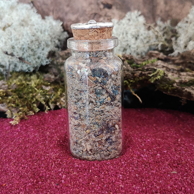 Contenant du sel rose d’Himalaya piler au mortier associé à de l’armoise, de la poudre de brique rouge provenant directement de la Nouvel Orléans et très connu pour ces pouvoir de protections contre les personnes négatives. Ajouté à ça trois différents poivres, concassé et pilé bénis par un charme de notre couvent concassé. Chargé par de la poudre d’œil de tigre, de lépidolite et d’hématite, cette résine est aussi puissante qu’unique…