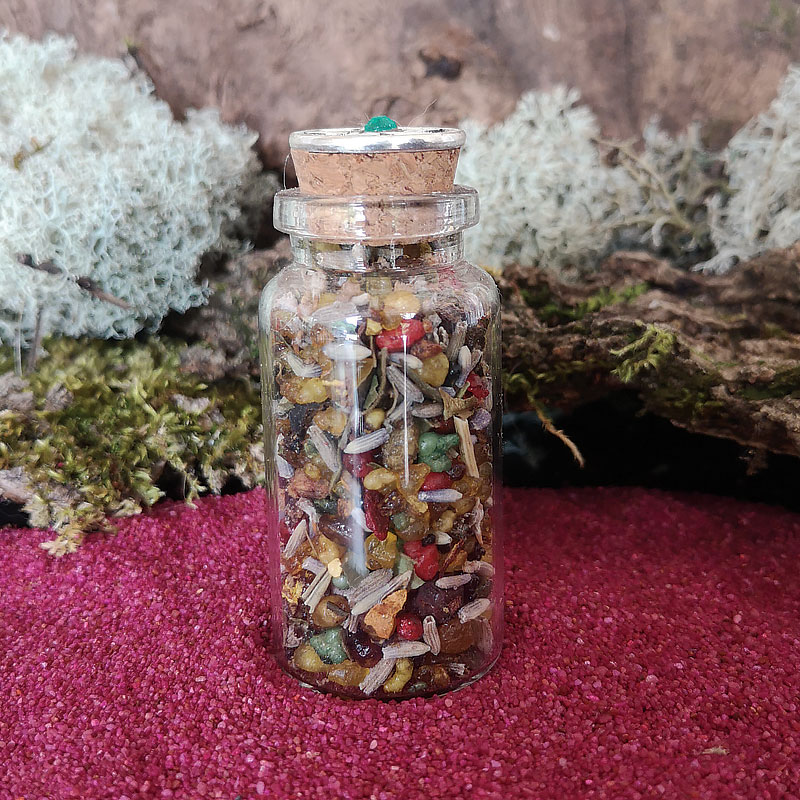 Ce mélange est épicé doux et en même temps fleurie, une odeur qui nous fait penser un peu a quelque chose de familier. Cela vous encourage à baisser vos gardes sur vos appréhensions et sur la vie elle-même, vous permettant apaisé, léger et libéré de tout emprises lié à votre environnement et aux contraintes de la société dans laquelle nous vivons. Il aide à vibrer à une fréquence magique et vibratoire les plus élevée.
