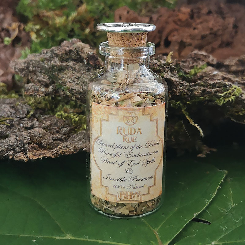 Ajoutée aux bains, la Rue brise tous les maléfices et les sortilèges qui ont pu vous être envoyés, et elle est d’ailleurs souvent ajoutée aux encens et mélanges d’exorcisme. C’est une plante protectrice lorsqu’elle est placée dans des sachets ou suspendue à la porte, et les feuilles fraiches frottées sur le plancher renvoient à l’expéditeur tout envoutement de maladie jeté sur vous.