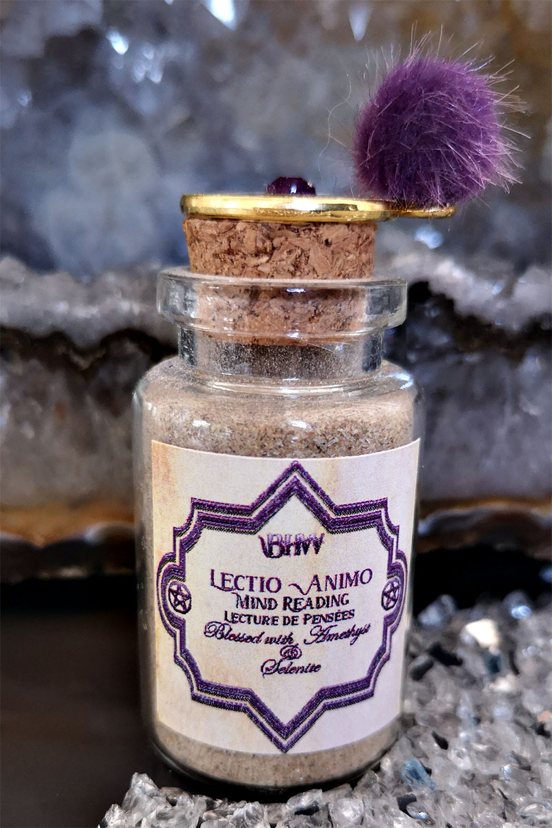 Un outil immanquable en « Haute Magie » et un « Must Have » pour les adeptes de la sorcellerie, cette poudre vous permettra, de par sa composition et son mode de création, de pouvoir augmenter votre empathie afin d’accéder à une partie de votre cerveau qui, une fois concentré sur la personne de votre choix, créera un lien télépathique avec elle. Une composition que nous garderons secrète mais dont nous pouvons vous révéler quelques ingrédients tels que la racine de mandragore, les feuilles de saule pleureur, des feuilles de chanvre, les racines de réglisse et bien d’autres encore… Le tout bénie de poudre de pierre de sélénite, d’améthyste toutes deux reconnues pour clarifier l’esprit, la compréhension et la sagesse et pour être une pierre de « Puissance » mentale et psychique.