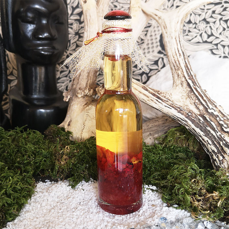 Inspiré de la recette connue à travers le monde « Come to me oïl » nous l’avons retravaillé afin d’en faire un philtre aux pouvoirs et aux senteurs uniques. Ce mélange comprend des ingrédients de tous types, comme il l’était au début de la pratique Hoodoo. Composé, d‘herbes, d’huiles, de pierres, de cristaux, de perles, d’effigies, de symboles etc… tous connues à travers l’histoire pour fonctionner comme de puissants aphrodisiaques.