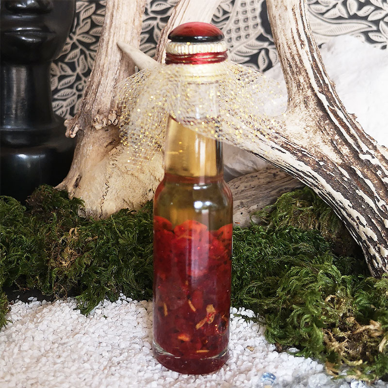 Inspiré de la recette connue à travers le monde « Come to me oïl » nous l’avons retravaillé afin d’en faire un philtre aux pouvoirs et aux senteurs uniques. Ce mélange comprend des ingrédients de tous types, comme il l’était au début de la pratique Hoodoo. Composé, d‘herbes, d’huiles, de pierres, de cristaux, de perles, d’effigies, de symboles etc… tous connues à travers l’histoire pour fonctionner comme de puissants aphrodisiaques.