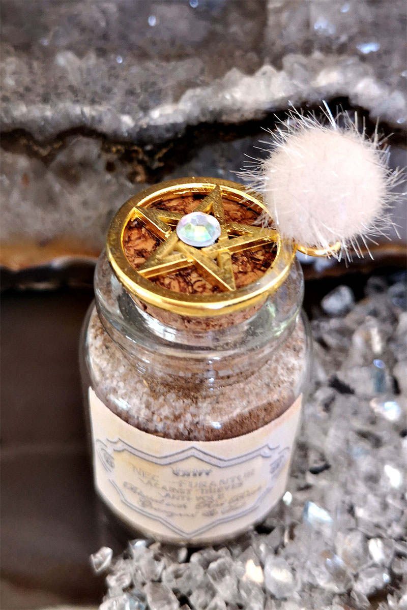 Une poudre dont la recette est issue de la magie Hoodoo retravaillée par la Magie Occidentale, elle est utilisée principalement dans les rituels de protection des habitations et des commerces, prévient les voleurs et enlève l’intention malveillante d’une personne de votre entourage. Tracez une ligne devant votre porte ou simplement saupoudrez en 3 pincées devant celle-ci, de la gauche vers la droite du coté extérieur pour un maximum de réussite.