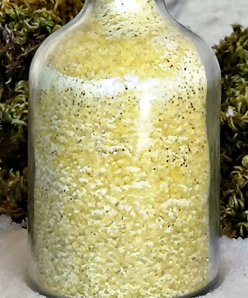 Magicalement le jaune apporte de la joie et de la chaleur dans la vie, tout comme le soleil, il nous rappelle la croissance et la nouvelle vie. Béni avec le cristal de citrine, ce sel peut jouer en votre faveur pour accueillir également l’abondance, le bonheur et la prospérité.