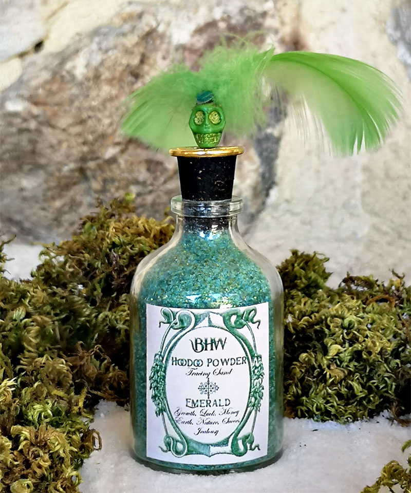 Béni avec de la poudre de pierre de Péridot, cette poudre hoodoo verte peut aider à équilibrer votre chakra du cœur ; Le péridot est souvent utilisé dans le culte de la déesse et les pratiques du Feng Shui, car il améliore l’unité, l’amour et l’équilibre au sein de toutes les choses vivantes.
