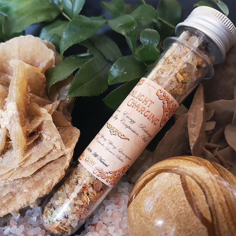 Notre mélange « Sunlight Charging » a été créé dans l’esprit des rituels Wicca par sa composition florale et ses actifs apaisants et régénérant. Nous avons voulu réunir la chaleur réconfortante du bain rituel au bonheur olfactif des effluves d’Ylang Ylang, d’écorces de citron, de coriandre, de mélisse et de fleurs de jasmin, le tout chargé et enchanté au heures et jours de mars, la planète solaire.