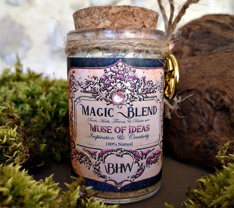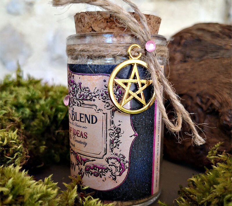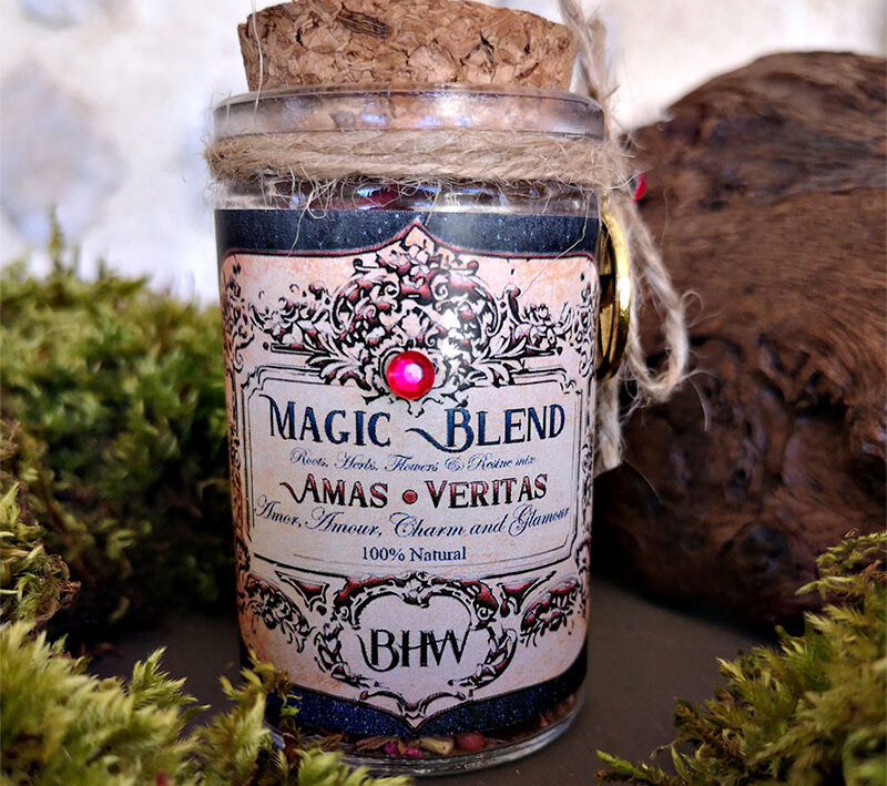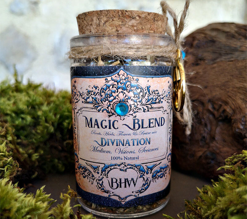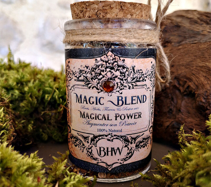 Cet assemblage de résines, de fleurs séchées, de racines, d’écorces et bien d’autres ingrédients que nous garderons secrets, se nomme mélange enchanté.